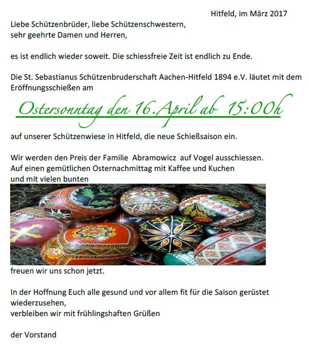 Ostersonntag wird die Schießsaison eröffnet!